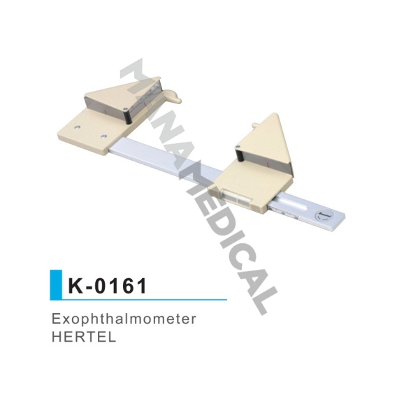 Przyrząd do precyzyjnych pomiarów stopnia wytrzeszczu i zapadnięcia gałki ocznej. Pozwala określić w milimetrach odległości wierzchołków rogówek oka od skroniowych brzegów oczodołu. Przy powtarzanych badaniach pomaga ustalić kierunek zmian (rosnące lub malejące wysadzanie oka). Całość w eleganckim etui.